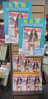 We have been promoting the latest issue of Women’s Health magazine with this column-based display created by our talented team in front of our main sales counter facing shoppers as they leave our women’s magazine aisle.