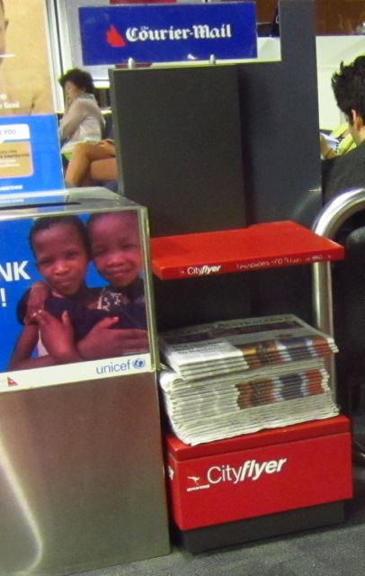 This is the stack of copies of The Weekend Australian newspaper at one departure gate at Brisbane airport late on Sunday night. There were similar sized stacks in several other departure gates.