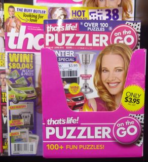 The placement of the pocket displays unit holding That’s Life Puzzler on the go in front of That’s Life is working brilliantly. We will sell out in three weeks. Nice.