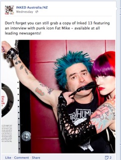 The Facebook page for Inked magazine is now at 40,500+ fans. This is a 33% jump from when I last wrote about it.