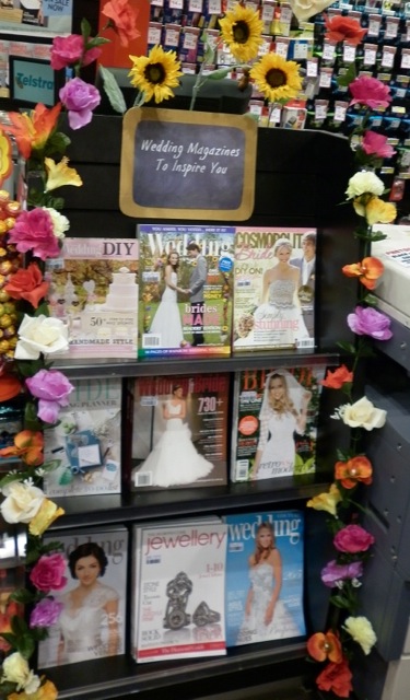 The team at one of my stores created this simple and bright display featuring current wedding magazines at the sales counter.