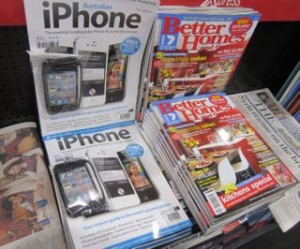 This past Friday, Saturday and Sunday we have had Better Homes and Gardens and Australian iPhone placed between newspapers. The BHG placement is easy – we do this every weekend and love the reward of sales from this location. I decided to place Australian iPhone here because of the free iPhone case with the magazine. It’s a freebie ideal to the target shopper.