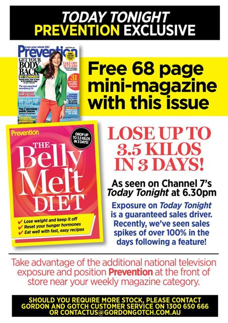 Newsagents should be ready to make the most of coverage of the latest issue of Prevention magazine on Today Tonight tonight. As the flyer from Pacific Magazines says, coverage like this leads to a terrific sales spike.