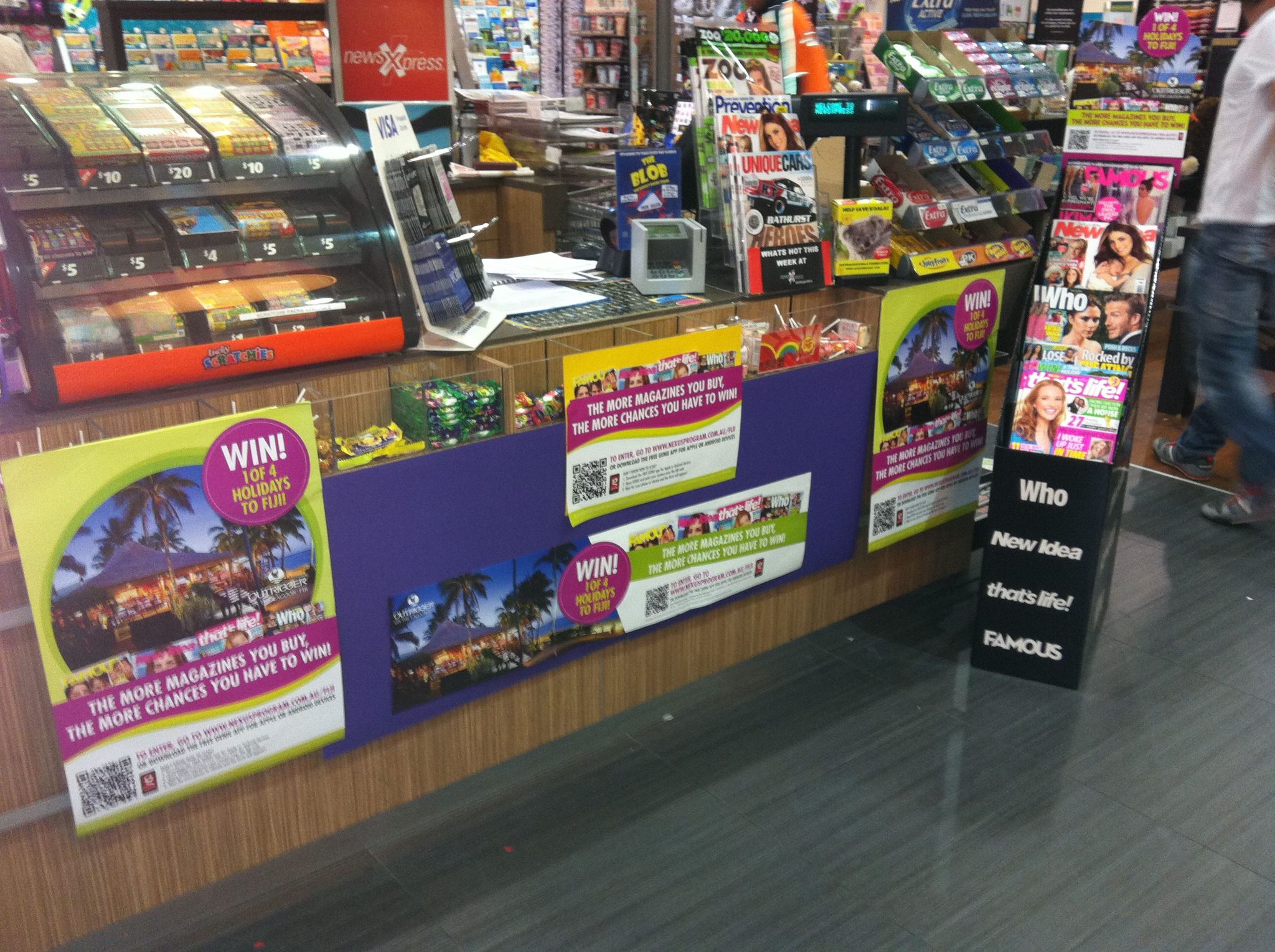 We are have been promoting the Pacific Magazines Win a holiday in Fiji competition this week with this display at the counter. I love these displays by the team at the counter around a single promotion or theme. It drives shopper engagement and connects us well with the prize on offer – in this case the Fiji holiday.