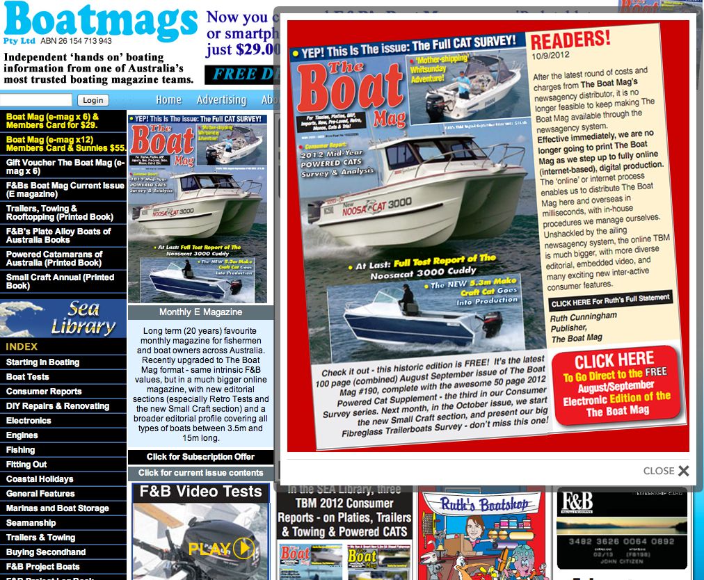 Check out the whack against newsagents and magazine distributors from the publisher of The Boat magazine. The same publisher whacked newsagents back in 2007. In this latest editorial, online now, the publisher complains about an increase in costs and charges from their magazine distributors and then says: Unshackled by the ailing newsagency system, the online TBM is much bigger…