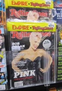 I was premature in calling the current issue of Rolling Stone with Pink on the cover an opportunity for us. I was surprised to notice that our stock in-store is bagged. This is nuts for music titles as browsing is important to driving purchases. You only have to stand in a newsagency and watch the browsing of music titles to notice this. When I was checking it out yesterday a customer looked at the title – we chatted about the title being bagged and he agreed and expressed frustration. I understand why it’s bagged and that the publisher expects to achieve incremental sales from the extra value. My feeling is that this is not ideal for a music magazine.