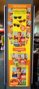 I love the bright look of the latest Cleo magazine. The terrific cover and bright collateral accompanying it was reason enough for the team at one of my newsagencies to place this out the front, facing into the shopping mall.