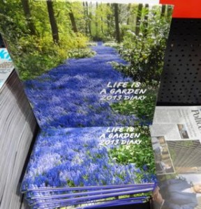 We have placed the beautiful LIFE IS A GARDEN 2013 DIARY between our two daily newspapers. This is in addition to with our diaries and garden magazines.