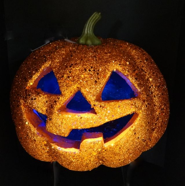 The photo is from the in-store display of our glitter pumpkin, our hero product. We sold out, ordered more and sold out. Brilliant! Sales this year have not been hurt by it being on a Wednesday.