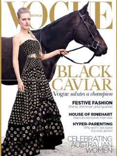 The timing of the latest issue of Vogue is perfect with Black caviar featuring on the cover. Out tomorrow in NSW, VIC and QLD metro, supply has been increased, especially in Victoria where Melbourne Cup fever is in full swing.