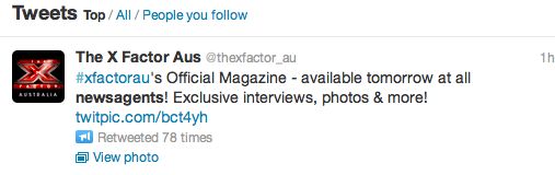 Thanks @thexfactor_au for telling your 116,903 Twitter followers that the official X Factor magazine is available tomorrow at newsagents. Newsagents appreciate the support.