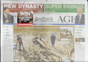 Age masthead cover up ·November 15, 2012 ·Mark Fletcher ·0 Comments The placement of the ad stuck on the masthead of The Age newspaper today directly covers part of the masthead. So sad to see a venerable newspaper brand treated in this way. 0 likes newspaper masthead desecration Leave a Reply Cancel replyYour email address will not be published. Required fields are marked *Name * Email * Website Enter Code * Captcha Comment * Δ Post navigation Next ArticlePrevious Article
