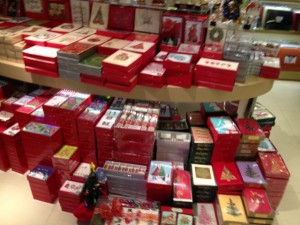 Check out home one card and gift shop in Hong Kong is displaying their boxed Christmas cards. They even have them on the floor! I was shocked at first but then I watched shoppers. They reached down and selected boxes from the floor as much as from the table – defying what we have been taught over the years. And it’s not an Asian culture thing as this shop was being shopped by plenty of expats.