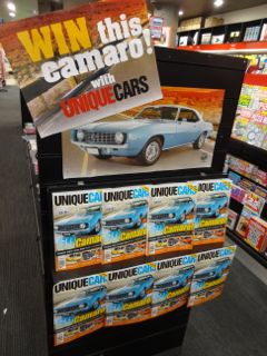 We are promoting the latest issue of Unique Cars magazine with this aisle end display facing into our men’s magazine reading area.