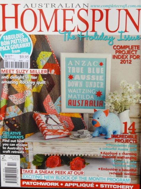I like the connection with the Anzac spirit on the cover of the latest Homespun magazine. It’s something newsagents could support – for quilters and others who would like to make something special to connect with Anzac Day this year.