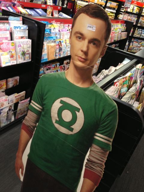I noticed a couple of girls having fun with the cardboard cut out we had of Sheldon from Big Bang Theory on Saturday. There were taking photos. One of them said it would be the perfect Valentine’s Day gift. So I moved Sheldon from the rear of the magazine department to the front. Why not … it’s hard to fail when you listen to customers!