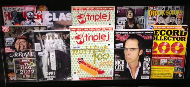 The latest issue of triple j magazine is the one you need to promote as it has bropader appeal than most issues. The hottens 100 is the hottest promotion by triple j, it receives excellent media coverage. So, we have taken the opportunity to reconfigure our small music magazine display to promote this as the hero product while still respecting the important Rolling Stone.