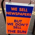 Through a Facebook page and other campaigns, newsagents in the Uk are being encouraged to not sell The Sun newspaper from News International. My interest is that newsagents, not the majority but enough to make a point, are engaging with the campaign and this is getting noticed – I saw it through a Tweet on Twitter.