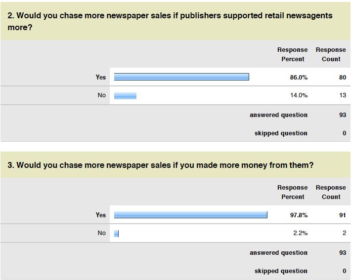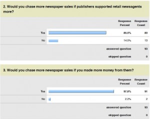 The survey I ran on the weekend produced a not unexpected result from the 93 participants – showing that newsagents do want direct publisher engagement, more commercial focus and a resolution of supply issues – so they can sell more newspapers.