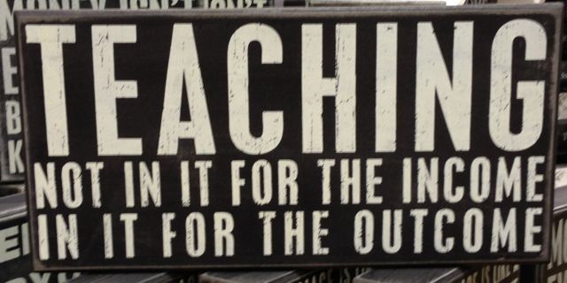 I deliberately placed this timber sign: Teaching – not in it for the income in it for the outcome – at the front of the placement of these signs because it’s how I feel about teachers and because for two years now the Liberal state government in Victoria has failed to deliver on their promise. Ted Baillieu said he’d make Victorian teachers the best paid in the country and for two years he has welched on that promise. So I was happy to use this sign as the lead in our refresh of this homewares range.