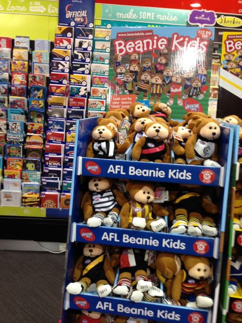 We have the AFL Beanie Kids toward the front of one entrance to the newsagency and directly behind and just to the left of them the Hallmark AFL cards. This way, people drawn to our Beanie Kids display will also notice the Hallmark AFL cards.