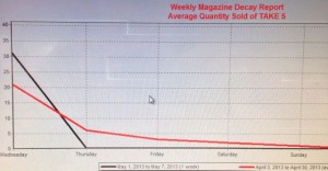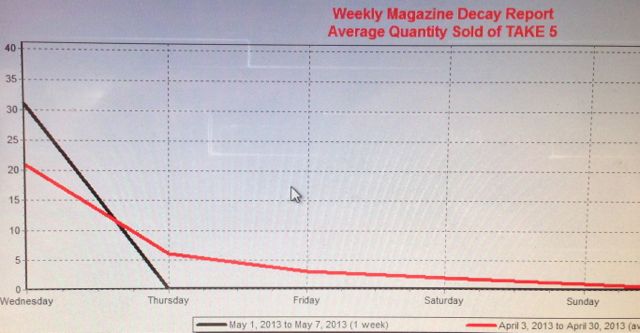 We experienced a surge in sales of Take 5 and That’s Life yesterday with both titles surging ahead of recent average Wednesday sales. You can see the surge reflected on the Sales decay report I produced for Take 5 yesterday mid afternoon – well ahead of the average of sales for the last four weeks. We’ve not done anything different for each of the titles – this surge is all their own work!