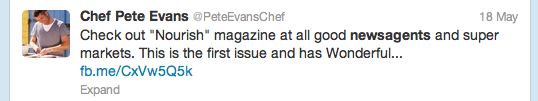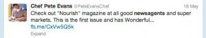 Newsagents have been supported by Pete Evans tweeting to his 10,000+ Twitter followers that people should check out Nourish magazine at a newsagency. This type of support for our challeng is terrific. If you’re on Twitter, be sure to thank Pete – @PeteEvansChef. I did.