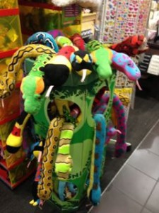 We have been having fun locating this free standing floor unit packed with plush snakes in various places in our newsagency.