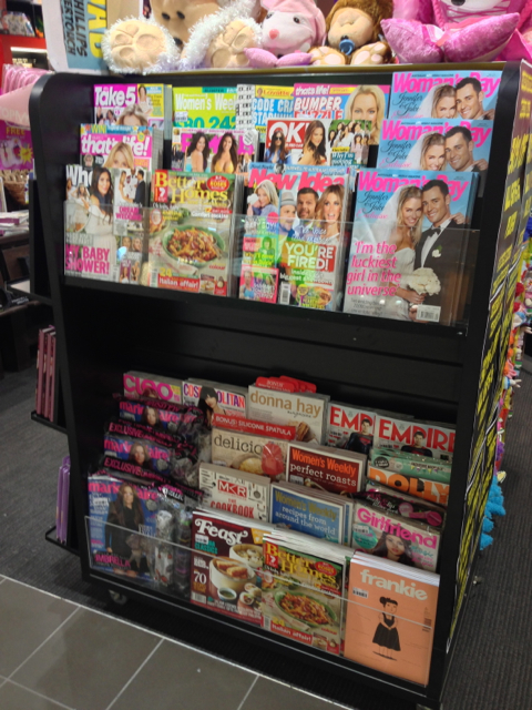 We have had this unit full of magazines placed on the lease line of the shop facing into the mall since last Thursday. It’s generated good sales – a good return on the space. We chose the titles deliberately, the selection is working.
