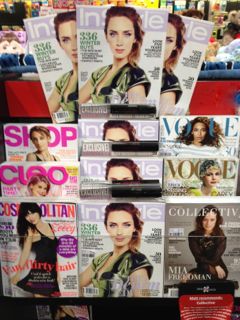 We are promoting the latest issue of InStyle magazine with this in-location display at the entrance to our women’s magazine aisle. We’re showing off the free mascara that comes with this issue – to leverage the email campaign being run to promote the free gift to shoppers.