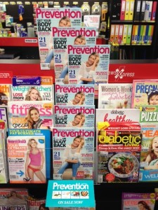 We’re promoting the latest issue of Prevention magazine with this in-location display as well as a placement of the display unit at the counter. The counter placement will change at the end of the week to a run with weekly magazines. Prevention responds well in our store to off-location support at the counter and elsewhere.