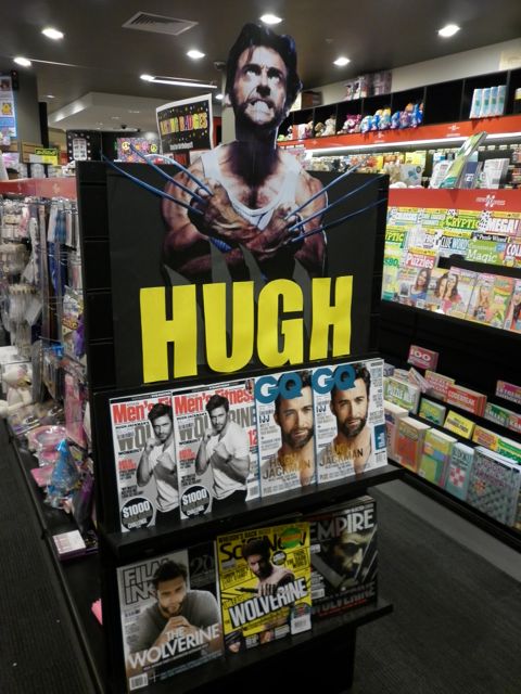 I love this Hugh Jackman display created by a team member at one of my newsagencies. It’s in the men’s magazine area toward the rear of the store.