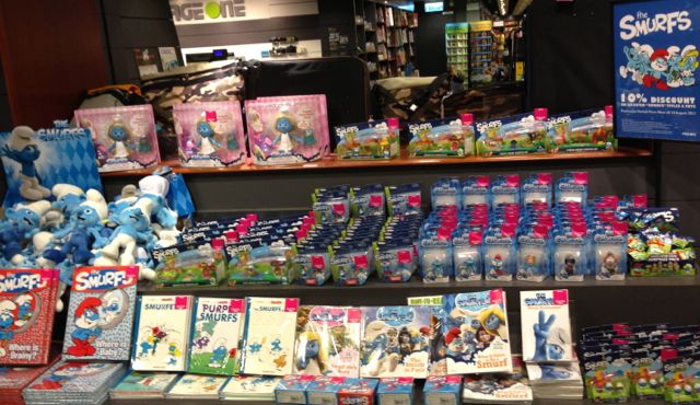 I was in Hong Kong on the weekend and saw Smurf products displayed in several stores including the shop in this photo.