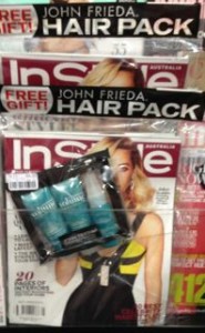 Even though it’s been a challenge to display the latest InStyle magazine is selling well thanks to the free hair products bagged with it. We have placed this issue with the gift in our feature magazine display stand on the lease line at the front of the store as well as the usual location with women’s magazines.