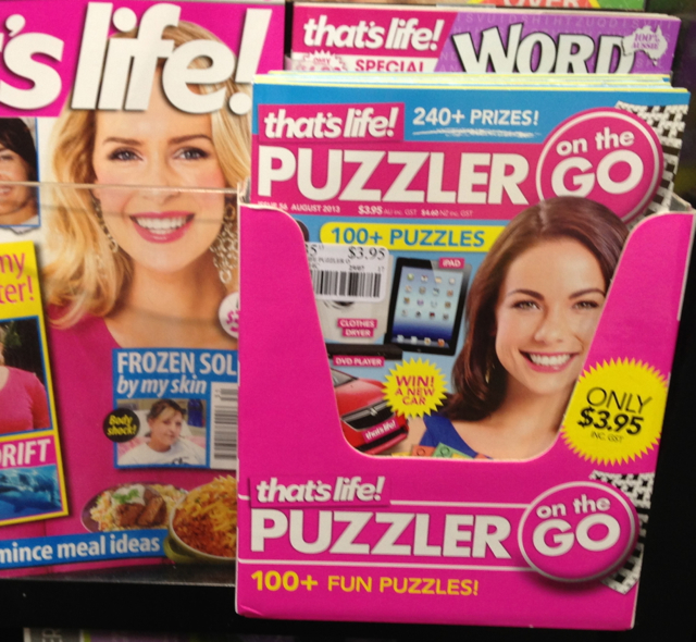 Our sales of That’s Life Puzzler On The Go are growing very well thanks to this placement with our weekly magazines, next to That’s Life itself. It’s terrific that a simple move taking a few seconds can generate good sales growth off already good base sales. I’d urge others to try this placement for themselves.