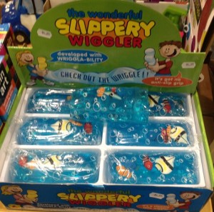 We’re enjoying this Slippery Wiggler product. It’s another impulse-purchase fun item we have our team members playing with, showing off to shoppers and selling as a result. It’s hard to hang onto – hence the name. It’s a perfect product to demonstrate.