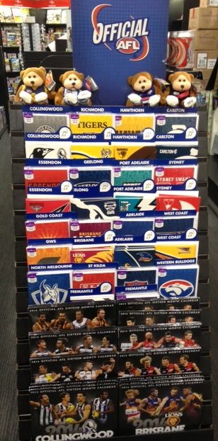 We’re using products from three different suppliers to support this aisle-end display promoting official AFL products. It’s faces into the front of the store and capping our magazine department.