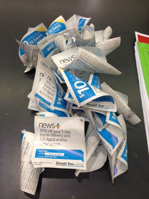 Here’s a photo sent to my by a newsagent this morning after they have removed the subscription ads from the front page of the Herald Sun newspapers they were delivered for sale in-store today. Fair enough I say. While I understand why newspaper publishers want to promote newspaper home deliveries, let them do it inside the newspaper and not with an ad stuck over the day’s front page news.