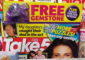 The free gemstone gift with purchase with the latest take 5 magazine is proving to be popular. I saw a noticeable lift in sales today. If suspect this is due to the extra real-estate being grabbed by the title thanks to the promotion insert.