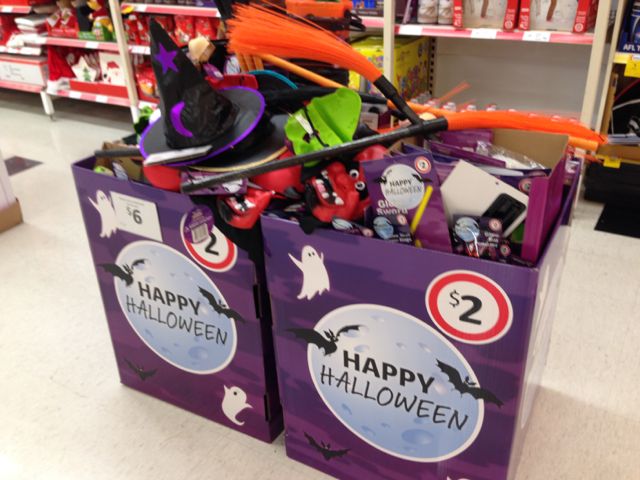 In the back of the same Coles supermarket were these dump bins of other Halloween items – party items and costumes – being quit at a considerable discount.