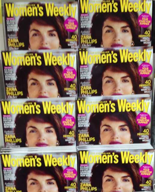 I love the Jackie Kennedy cover on the latest AWW. We’re featuring it off-location with the full cover on show, at the counter as well as in waterfall locations in each of my newsagencies.