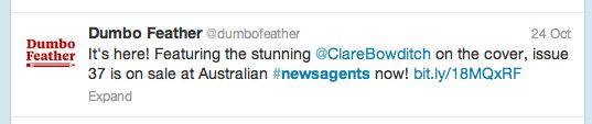 It’s great to see special the publisher of interest magazine Dumbo Feather promoting newsagents on Twitter. Their 8,682 Twitter followers received this tweet. This type of social media engagement by publishers of special interest titles is excellent for newsagents as it plays to our strengths as the go to retailers for special interest magazines.