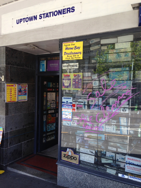 Check out the stationery business I saw in Auckland a couple of weeks ago – click on the picture. There was no stationery in this shop even though it is called Uptown Stationers. It was all tobacco, drinks, international phone calling cards and junk.