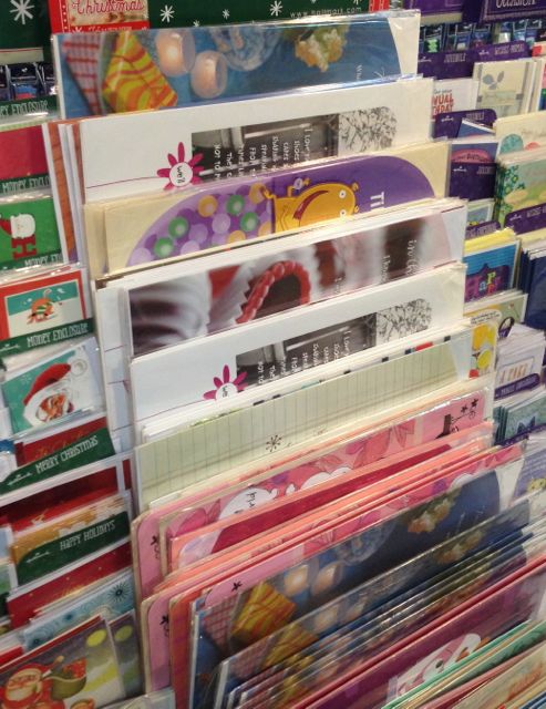 I wish Australian card companies produced the HUGE Christmas cards I’ve seen overseas. I suspect large cards like the cards in the photo would sell in Australia. They a simpler than the large Christmas cards in the UK where a single card is purchased in a gift box. No, these cards in the photo are like the large cards we sell today but they are for Christmas.