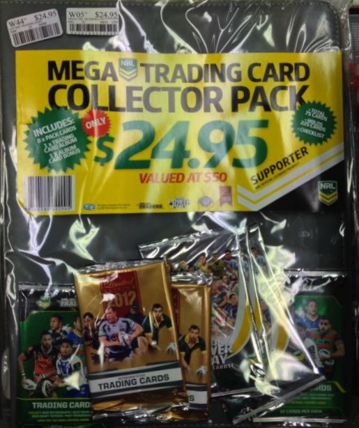 The Mega Trading Card Collector Pack units that did not sell when distributed through Network Services have made their way to some newsagencies through Gotch. They – the publisher? the distributor? – didn;t even have the courtesy to remove the old pricing stickers. Appalling.