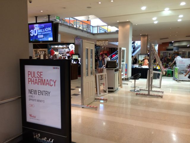 Also on Saturday, Westfield setup a series of outposts and signs out the front of my shop in such a way that they blocked the usual and natural flow of foot traffic from the car park across to the newsagency. The photo does not show how bad the Westfield layout was. Not only did it block traffic, the door outpost was dangerous with people (myself included) tripping on the base of one of the stands. Again, the person from centre management offered no solution.