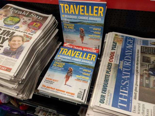 We are giving the latest Australian Traveller magazine (with the popular reader’s choice awards) time in the spotlight with placement between our two daily newspapers. A couple of minutes work achieves extra sales. Newsagents can grow magazine sales.
