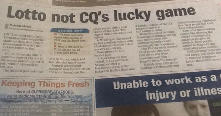 The Rockhampton Morning Bulletin today talks down lotto to its readership. This same newspaper relies on lotto retailers, newsagents, to promote its product to their customers.