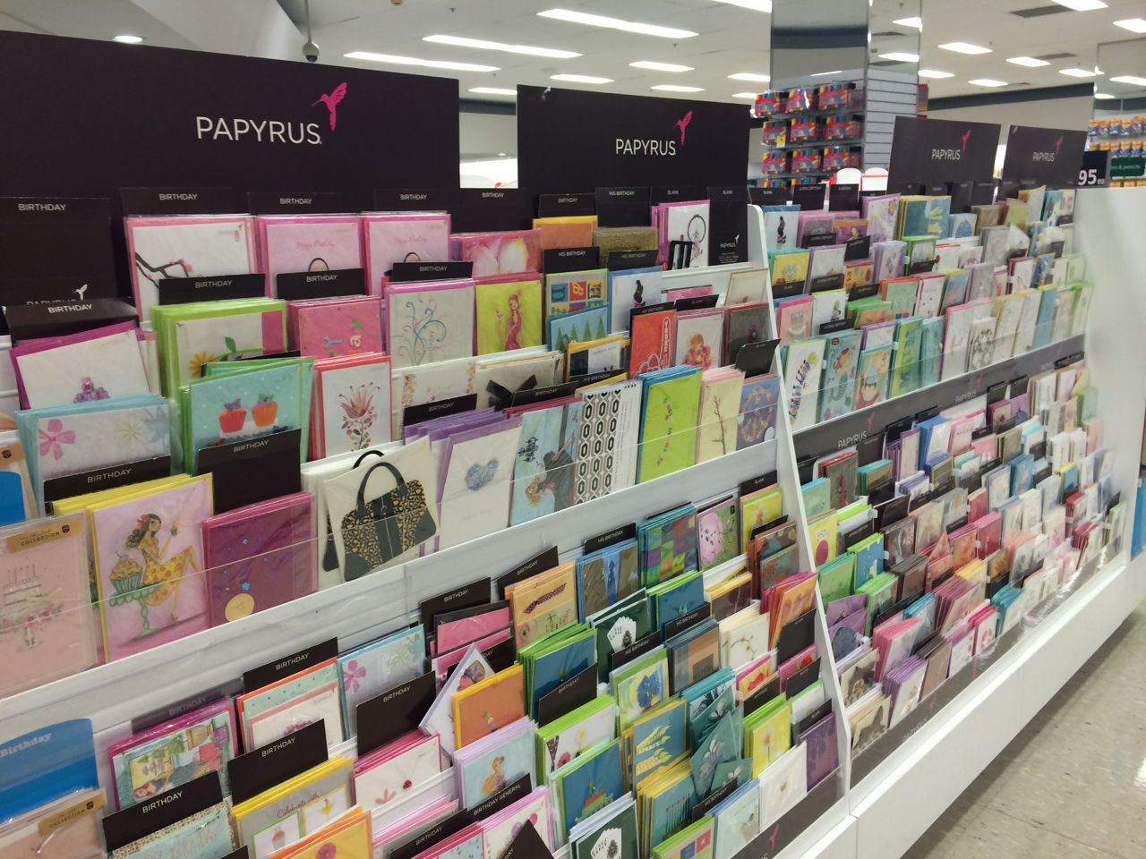 This display of 200 pockets was not the full range of Papyrus in the Woolworths store.