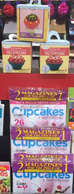 I never see magazines as a single item or single category purchase. The location of the category, promotion of other products in the category and traffic interruptors going in and coming out help leverage greater efficiency from the magazine shopper. This photo shows one example of a small step we have taken to drive sales of items to people browsing Australian Cupcakes & Inspirations. Even a simple small placement like the felt cupcake kit can help make magazines more efficient for us. It’s better we obsess about opportunities than drive magazines down because of all the problems with the distribution model.